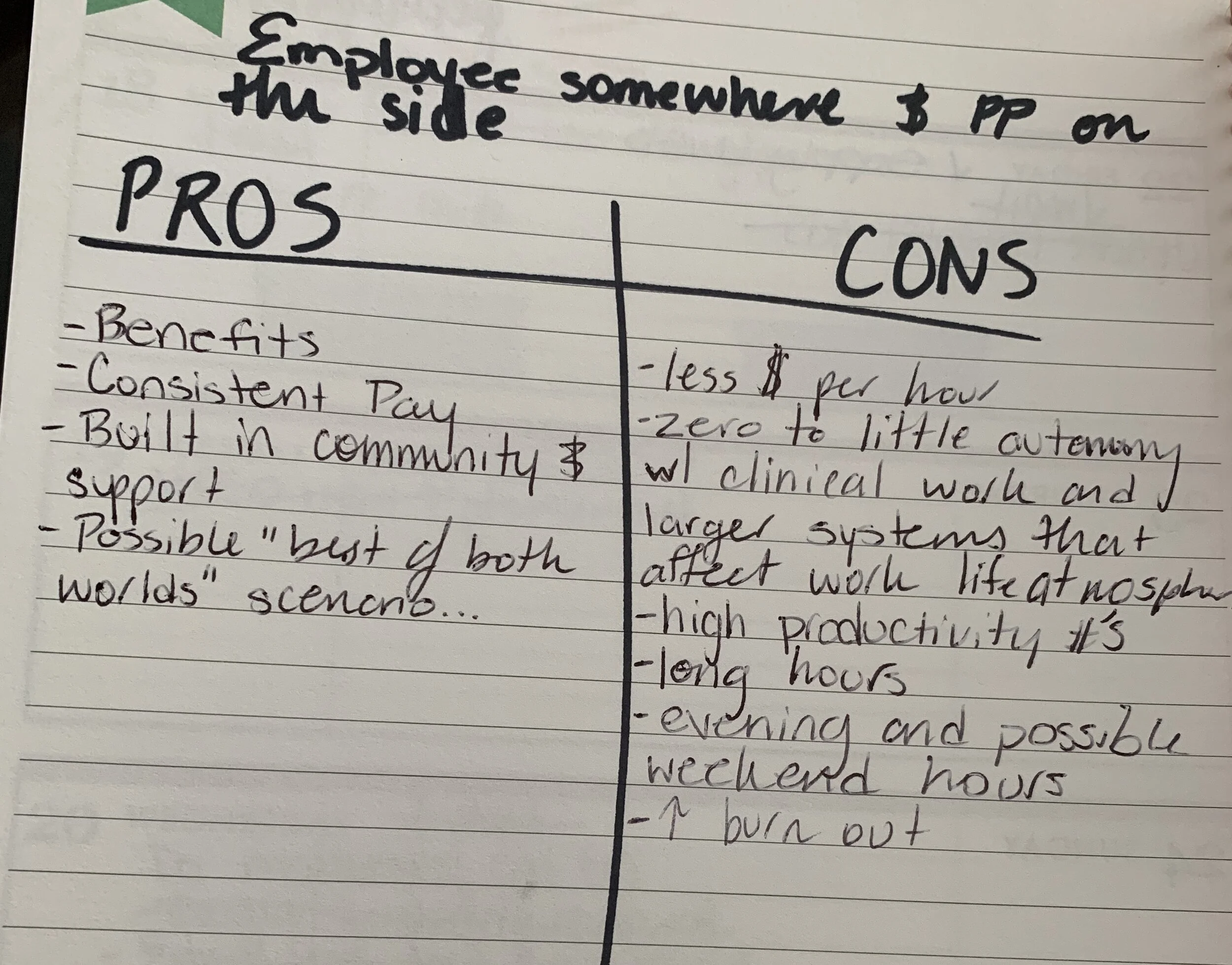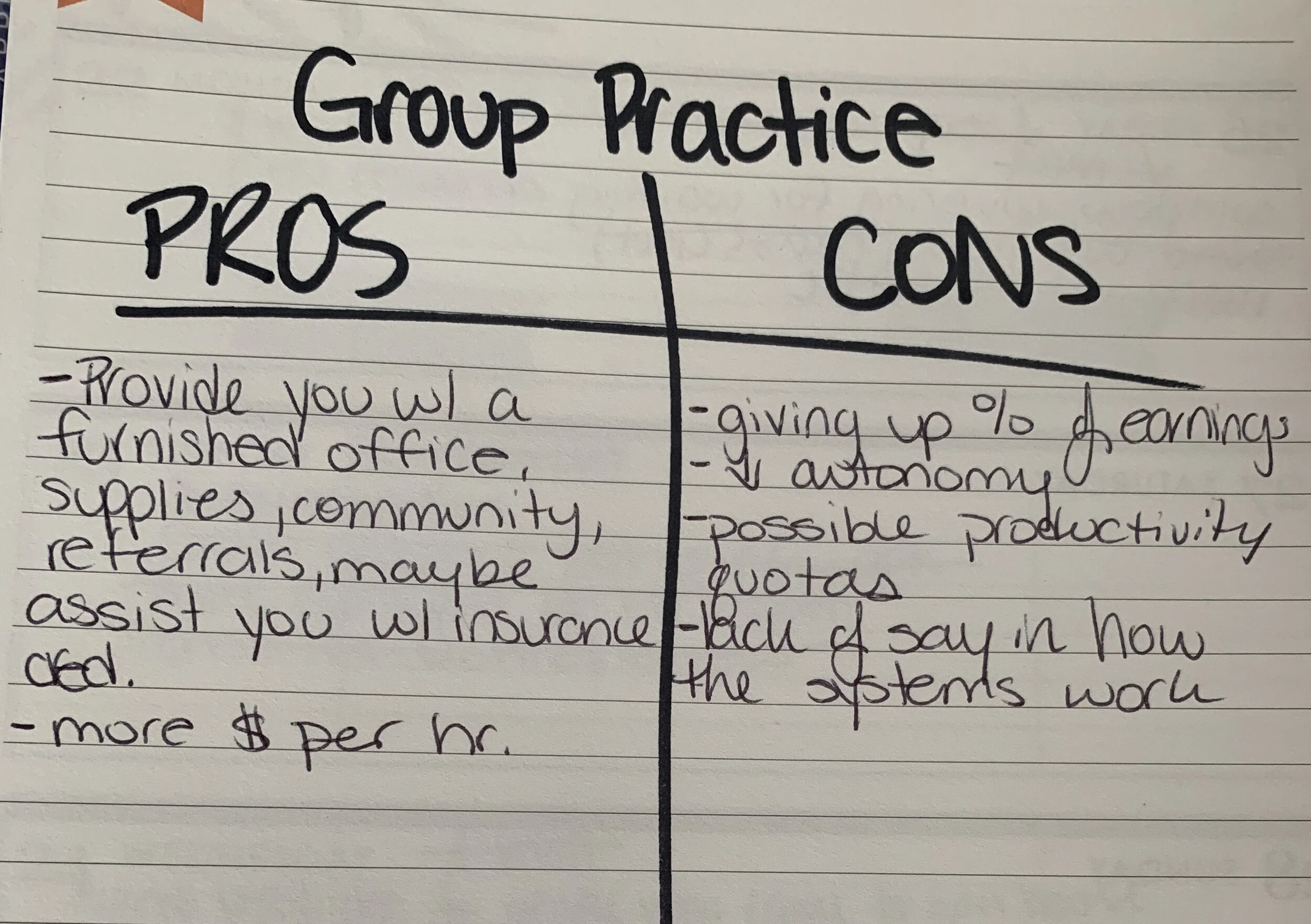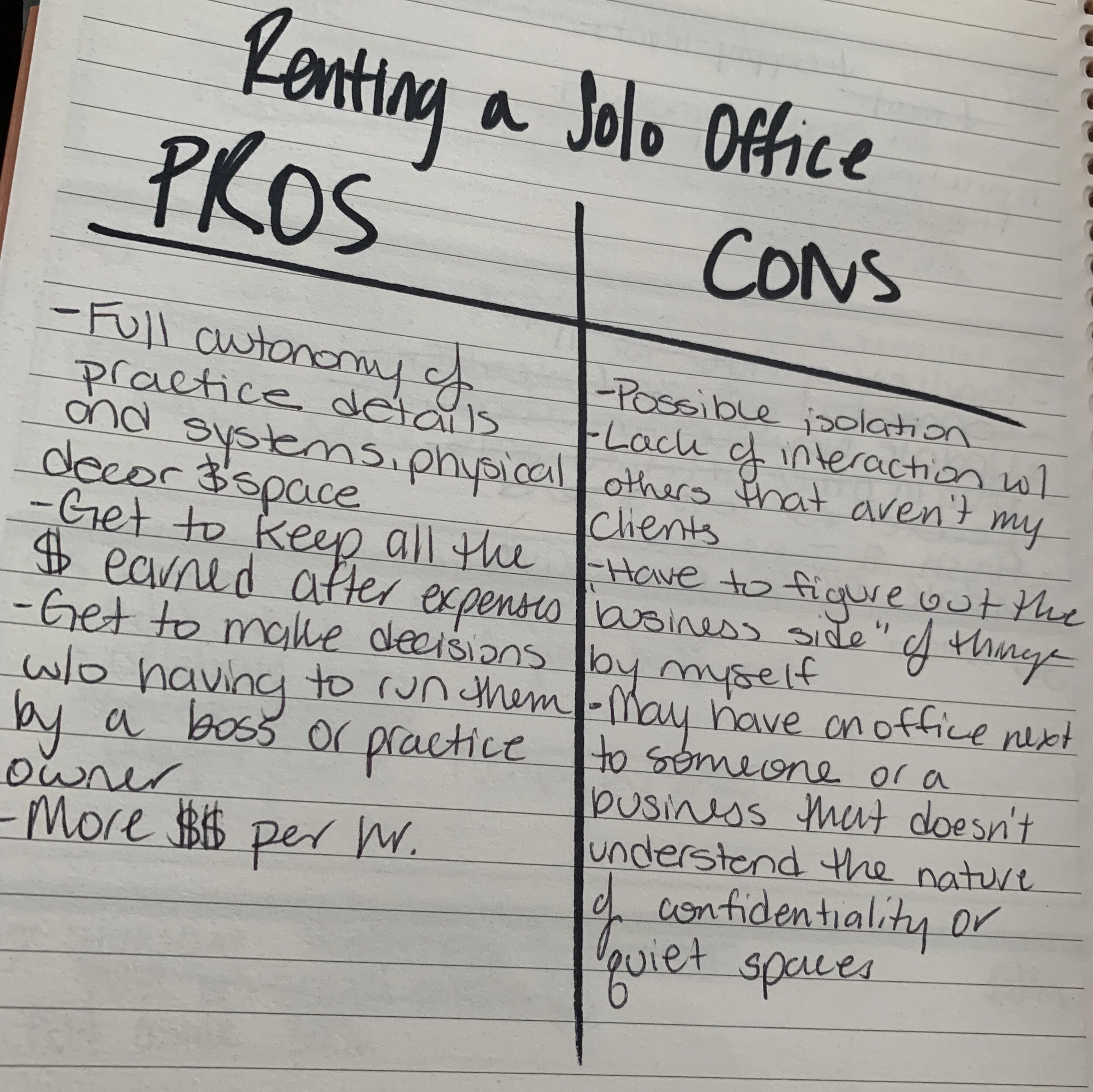 Though some of these traits were in each of the pros lists from above, I knew that community and having full autonomy of my practice were my NON-NEGOTIABLES and those two traits together were not found in any of the options above.